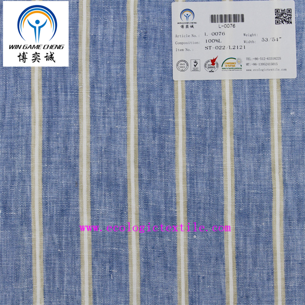 21*21 stripe pure linen fabric for shirts L-0076