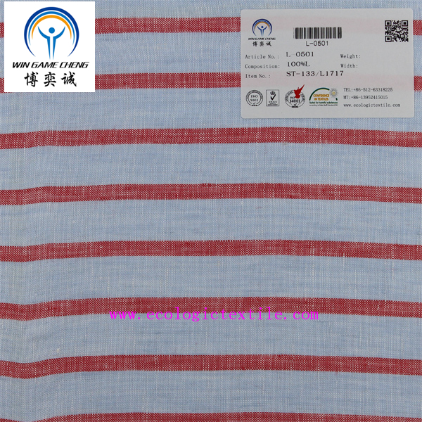 17*17 pure linen yarn dyed stripe fabric L-0501
