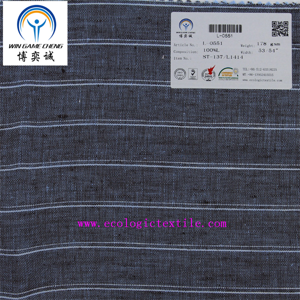 14*14 100% linen yarn dyed stripe fabric L-0551
