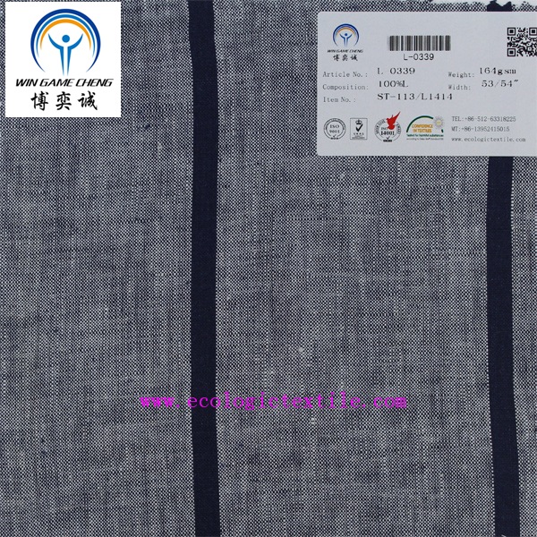 14*14 pure linen stripe fabric L-0339