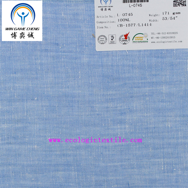 14*14 pure linen chambray fabric L-0745